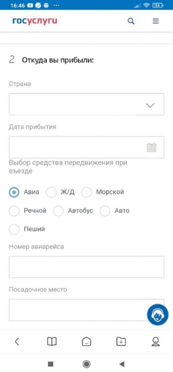 - Во второй части вы вносите информацию, откуда вы прибыли. Данные рейса, посадочного места, город, время прибытия.
